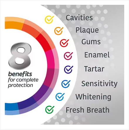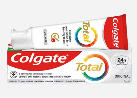 Strong, healthy smiles are happy ones. And with Colgate Total Original Toothpaste it’s easy to achieve with its stronger* 24-hour bacterial defence that offers superior* bacterial reduction on your teeth, tongue cheeks and gums. Our toothpaste, with unique dual zinc antibacterial technology, also gives you long-lasting* protection and 8 brilliant benefits for complete protection.
