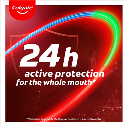 *Superior bacterial reduction on teeth, tongue, cheeks & gums vs. non-antibacterial fluoride toothpaste with 2x daily continued use after 4 weeks.