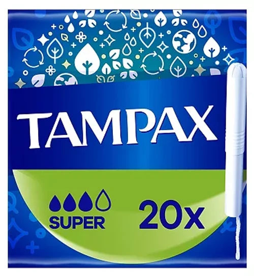 Tampax Super tampons with cardboard applicator help you feel clean and confident. Tampax tampons have an absorbent core and a protective skirt for additional back-up protection, while their cardboard applicator features an anti-slip grip for easy...Sale price £2.00Regular price £2.80 -