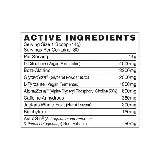 MENACE was formulated to tick all the boxes, covering PUMP, ENERGY, FOCUS and ABSORPTION. Our goal was to offer a fully dosed and transparent formula based on 30 servings.Sale price £27.99Regular price £29.99 -